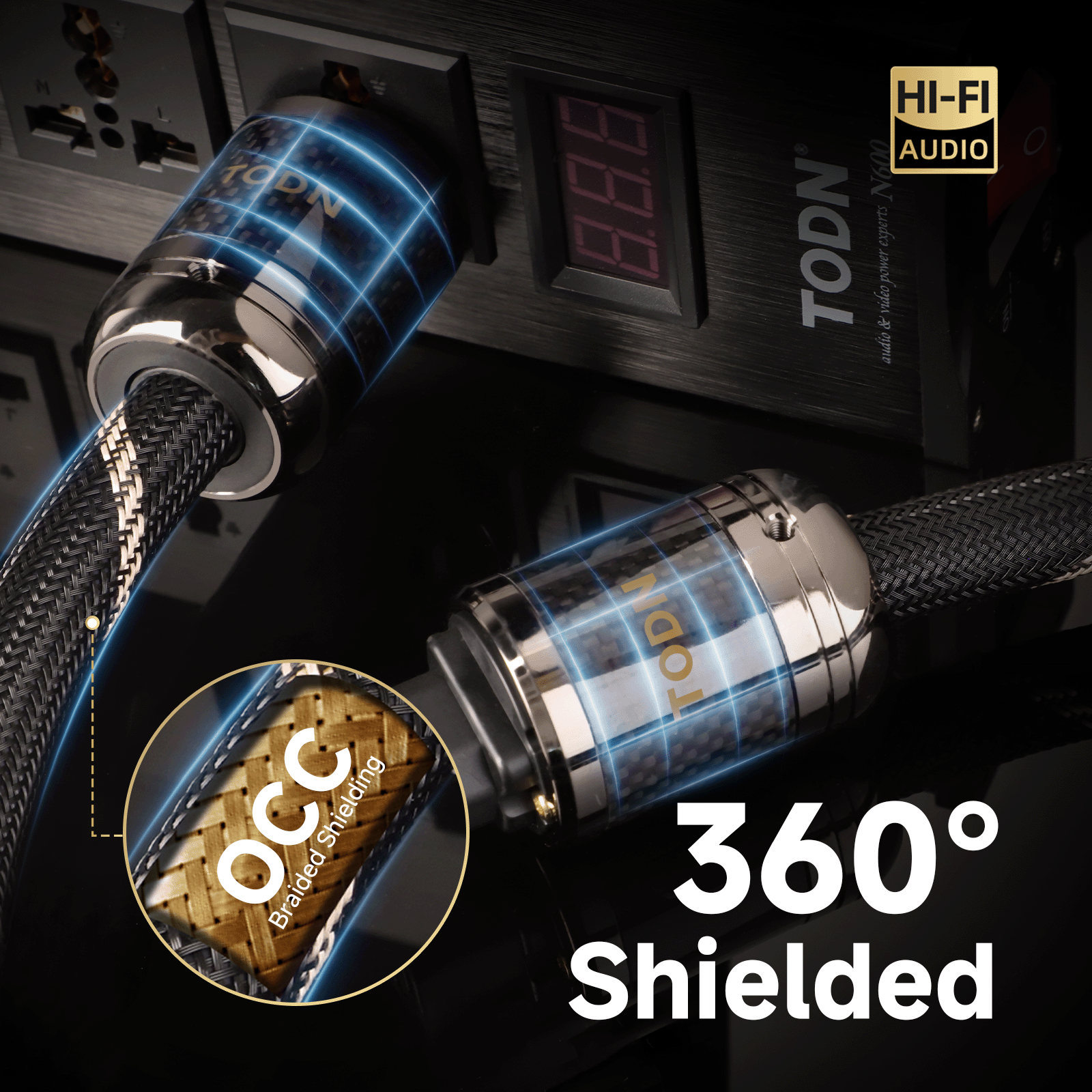 Strong Dynamic Current: TODN audiophile power cable features 3 OFC+OCC conductors with a total cross-sectional area of 7 AWG (3.2 mm² *3), and this audio power cable delivers strong, stable power flow. The OCC's low resistance enhances subtle details like breath sounds in vocals and instrument overtones. And the thicker wire gauge ensures uncompressed delivery of transient high currents while reducing signal jitter. Perfect for capturing every dynamic shift in orchestral music