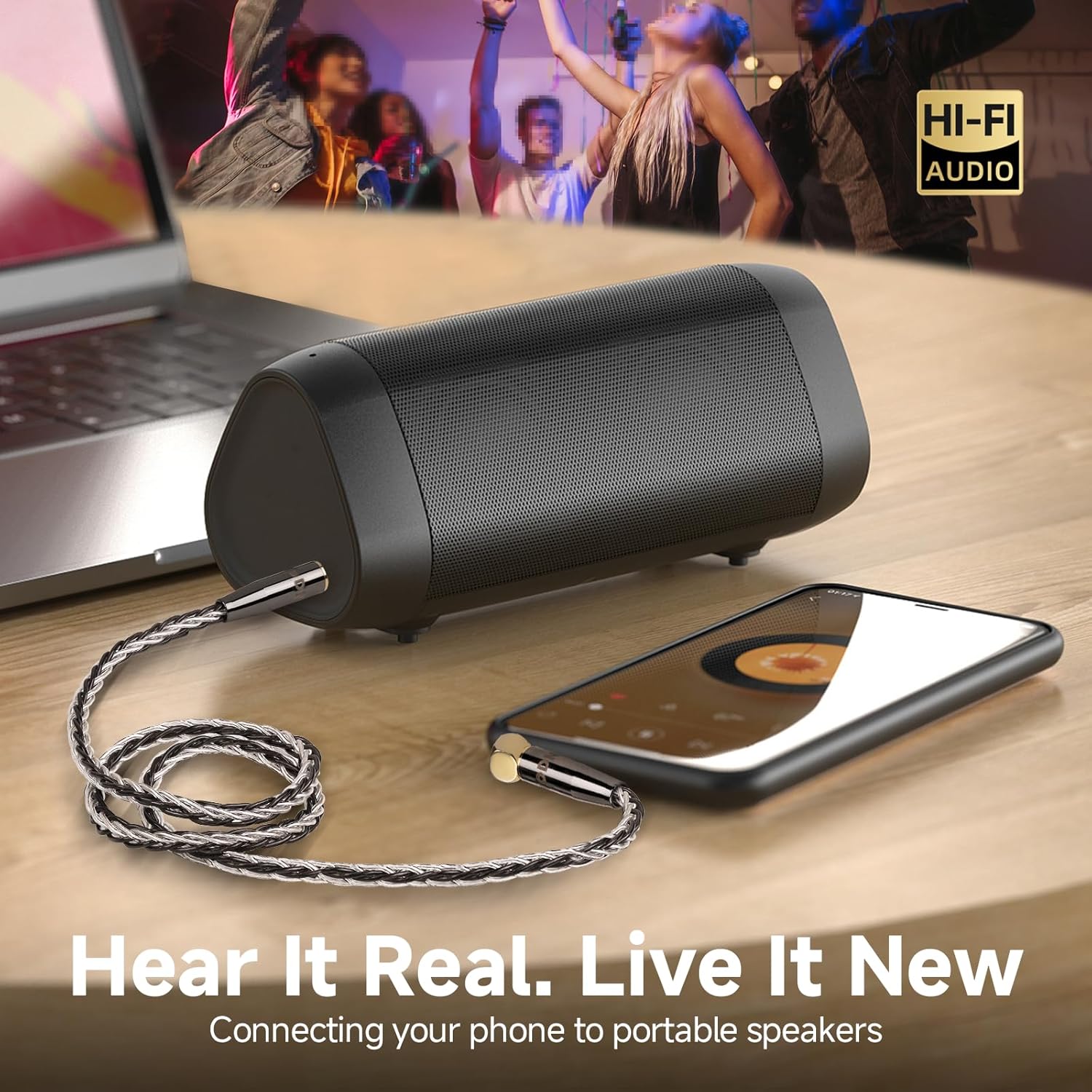 - Vivid Vocals & Bright Highs: This professional AUX cord for audiophile crafted with 4-core OCC copper and 4-core pure silver conductors (99.9999% purity) for lower resistance, delivering striking dynamic contrast in your music.This design not only boosts high-frequency extension by 40% and delivers great sound with balanced frequency response, but also enhances vocal presence and treble resolution. After a 48-hour burn-in, the 3.5mm audio cable signal transmission becomes noticeably smoother