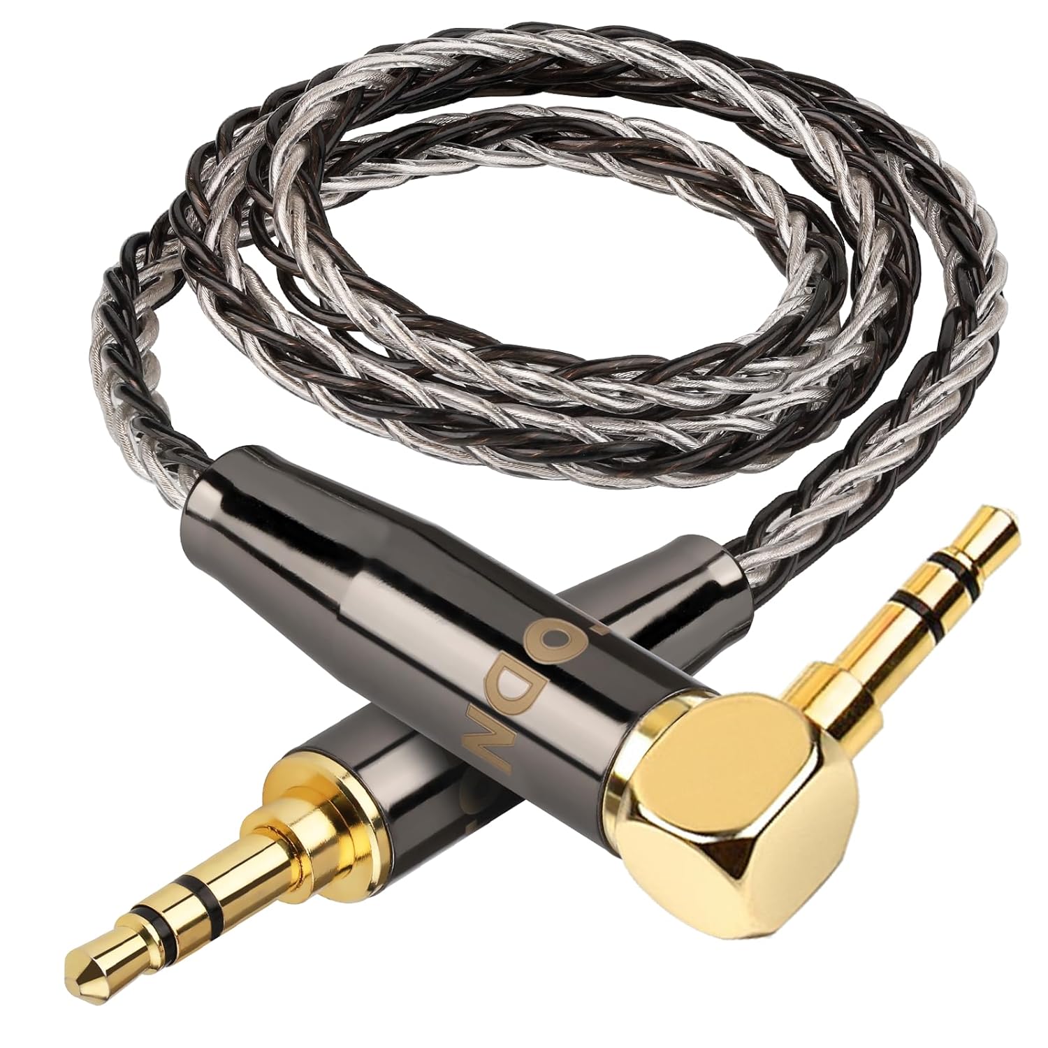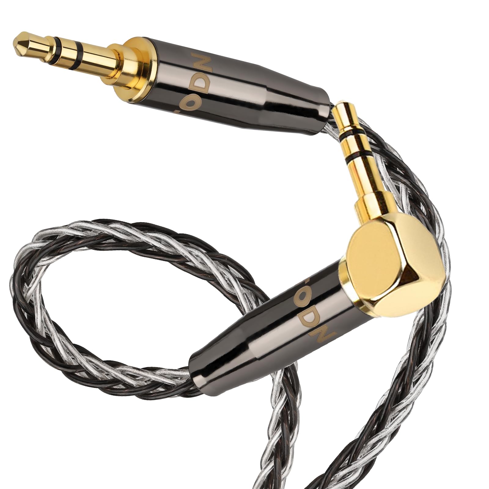 TODN HiFi 3.5mm Audio Cable for Audiophile 90 Degree AUX to AUX Cord with OCC+Silver Core for Car Stereo/Headphones/Tablets